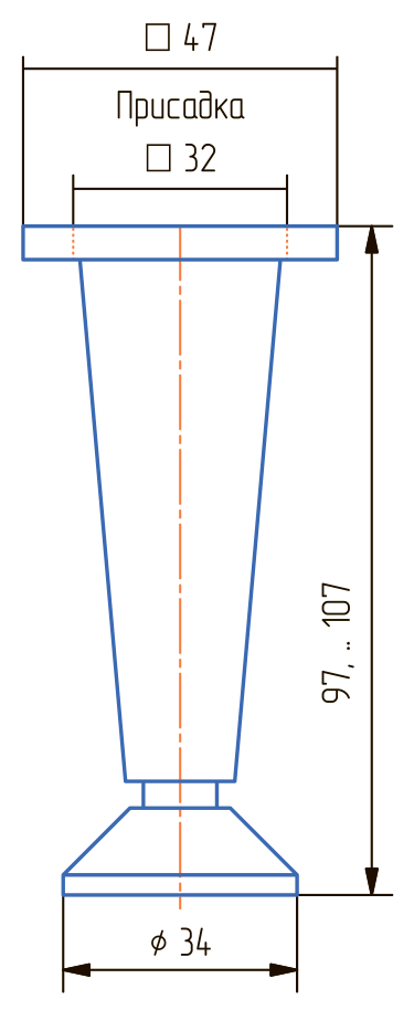 Опора регулируемая RK-100 для корпусной мебели собственного производства предназначена для установки под основание мебели.